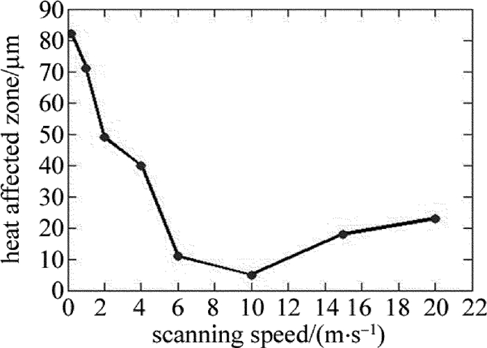 (3) 掃描深度隨著掃描次數的增加呈非線性增加,而隨著掃描次數的增加熱影響區有一定的減小,當重復掃描20次時,可以保證熱影響區較小的同時有較高去除效率。